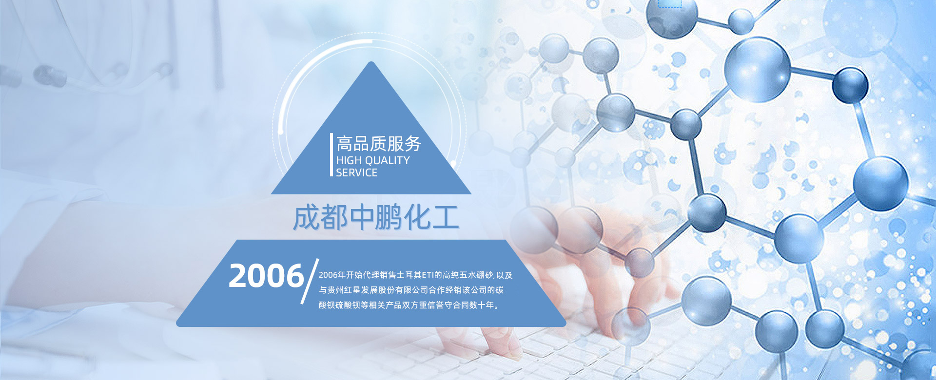 成都中鵬化工有限公司成立于2001年,位于成都市新都區(qū)木蘭木名商塑化城2棟11號(hào),公司成立16年以來,一直堅(jiān)持為客戶提供各種基礎(chǔ)化工原料的產(chǎn)品。我公司長期對(duì)于玻璃、陶瓷、電鍍、洗滌、“硼砂”、“碳酸鋇”、“氯化鋅”、“氯化鉀”、“硫酸鋅”等基礎(chǔ)化工原料的開發(fā)供應(yīng)。 公司現(xiàn)在員工上百人,在全國擁有多個(gè)營銷體系和完善的售后服務(wù)體系,長期以來,通過為客戶提供各種基礎(chǔ)化工原料的產(chǎn)品,形成了良好的合作關(guān)系...